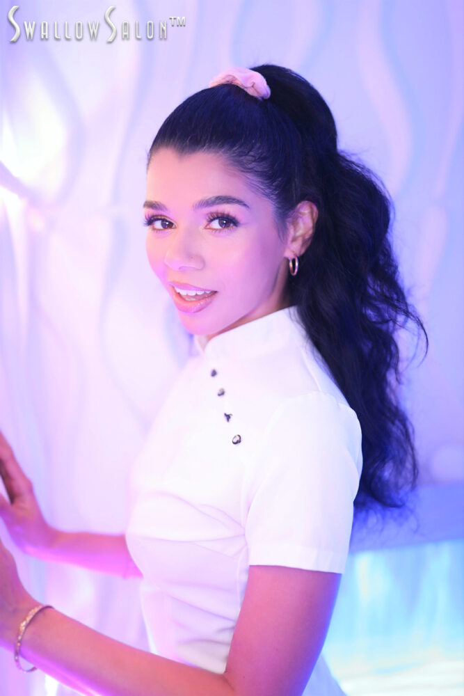 NEW VIDEO! Beautiful Harley Haze works her magic at the Swallow Salon!