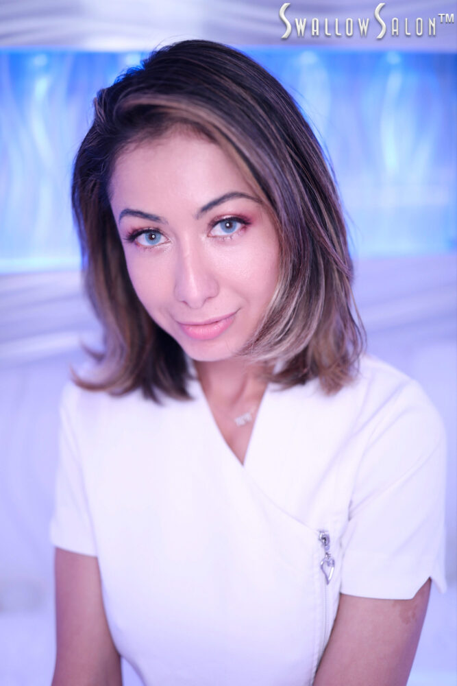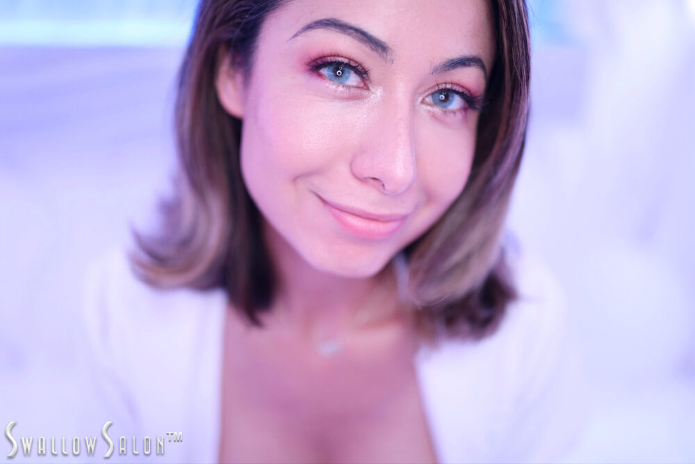 In the warmly lit Swallow Salon, the atmosphere hums with relaxed anticipation as an excited client settles-in on the plush salon chair for his appointment. Suddenly, the door swings open, and the stunning Lily Evans — also known to fans as Athena Amour — steps inside with a radiant smile, her elegant presence instantly drawing admiring glances from everyone. Dressed in a chic, white, salon outfit that accentuates her ABUNDANT natural grace, she greets her client with enthusiastic teasing and playful banter, announcing her unexpected drop-in for a pampering session. The salon buzzes with excitement as she settles to her knees to begin a luxurious treatment, working her magic, turning an ordinary day into a delightful, star-studded surprise visit filled with a SPECIAL BONUS SERVICE — rarely seen in the Swallow Salon! ENJOY! And Happy New Year!